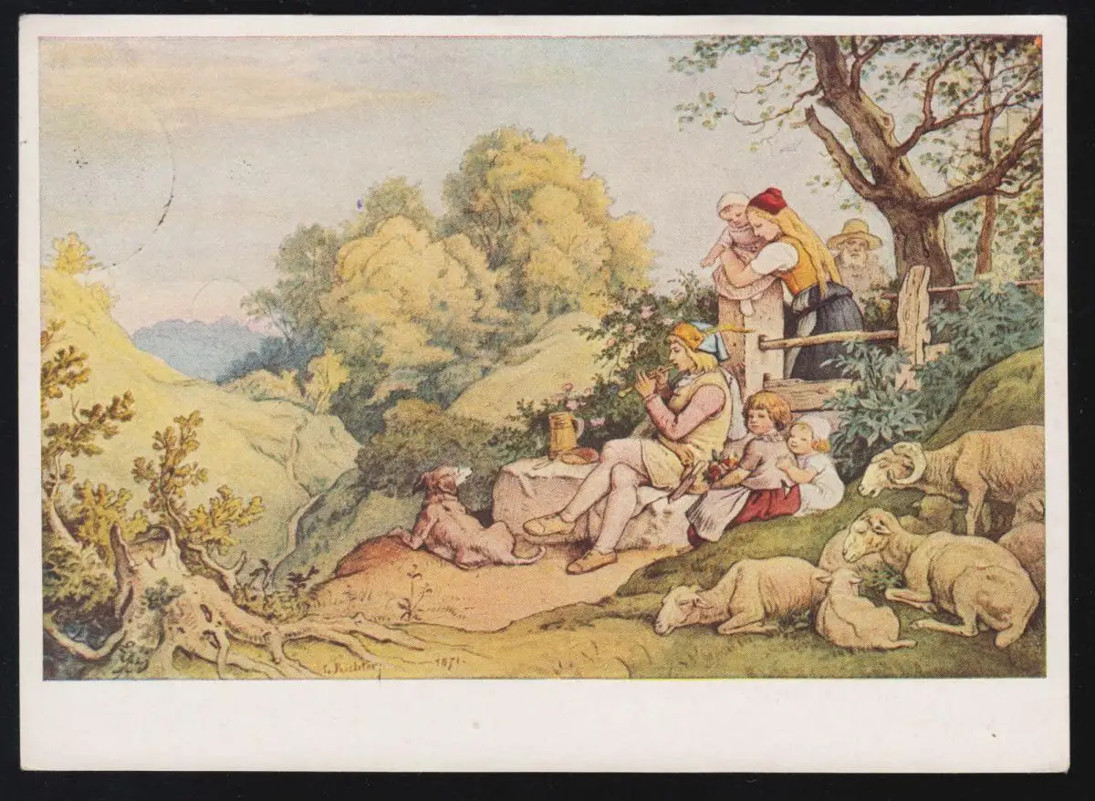 Lena, temple de Landpost, sur GOTHA 3.3.59 sur AK Adrian Ludwig Richter: Mainelust