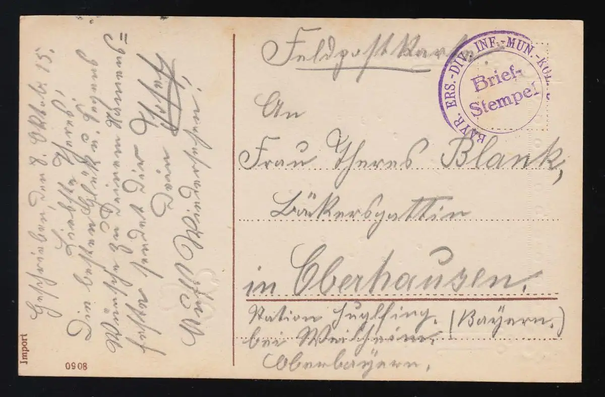 L'enfant porte la couronne Ne pas oublier, jour de nom post-feld bayer. Ers.-Div. 8.10.1915