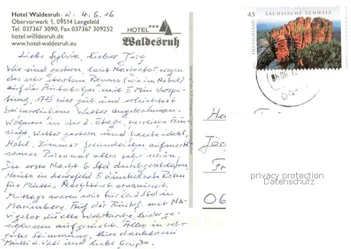 Lengefeld_Erzgebirge Hotel Waldesruh Restaurant Landschaftspanorama Lengefeld Erzgebirge postalisch gelaufen 2016 Erhaltung siehe scans [FriedD77] Frierer