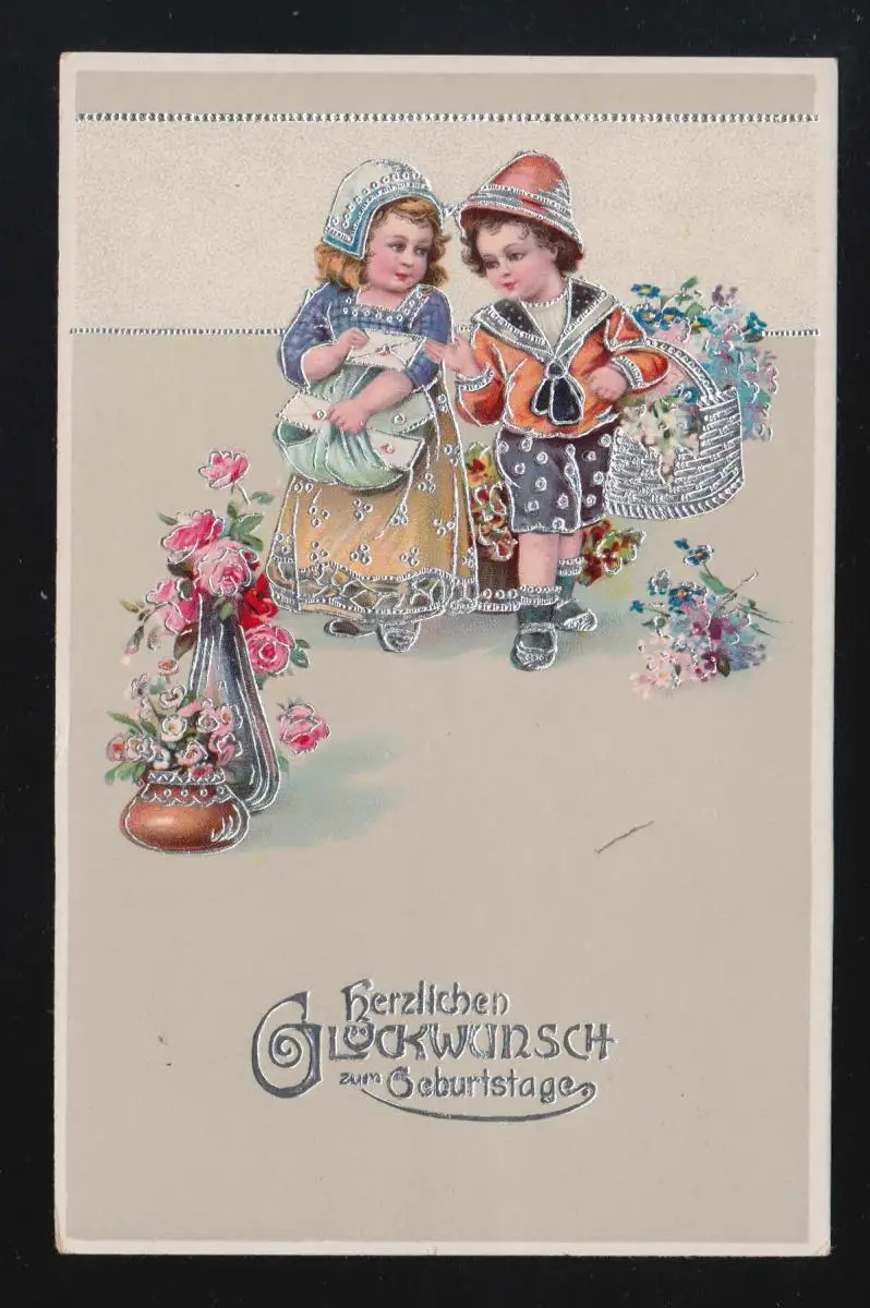 Les enfants apportent des fleurs Cadeaux Lettres, Félicitations Anniversaire Zeuthen 4.11.1914