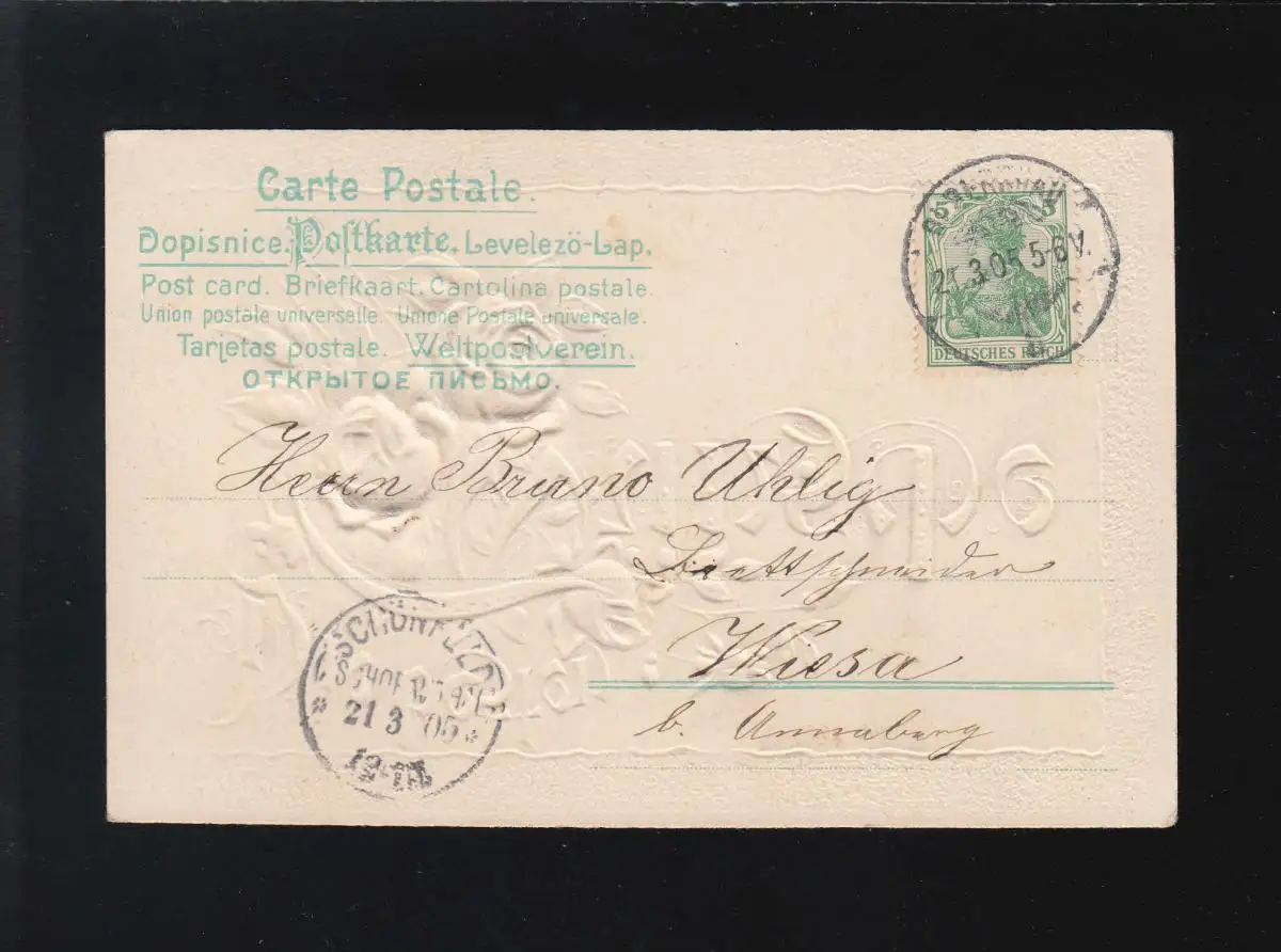 Les meilleurs vœux, Roses roses Branches, Pour l'anniversaire! Beau champ 21.03.1905