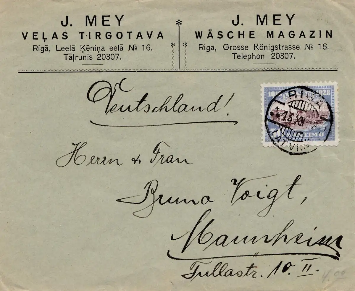 Lettonie: 1928: Riga vers Mannheim - Laver Magazine Mey