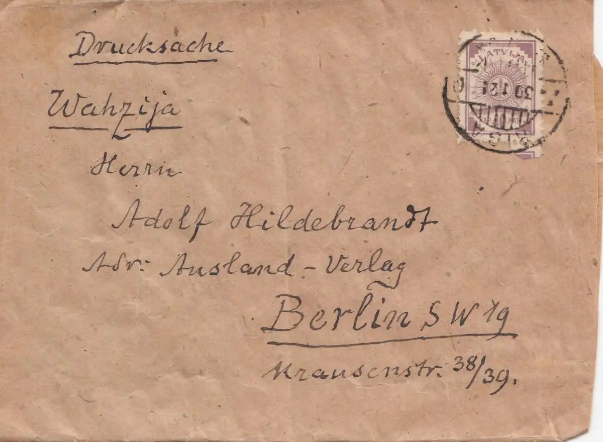 Lettonie: 1921: bande de journaux Riga vers Berlin