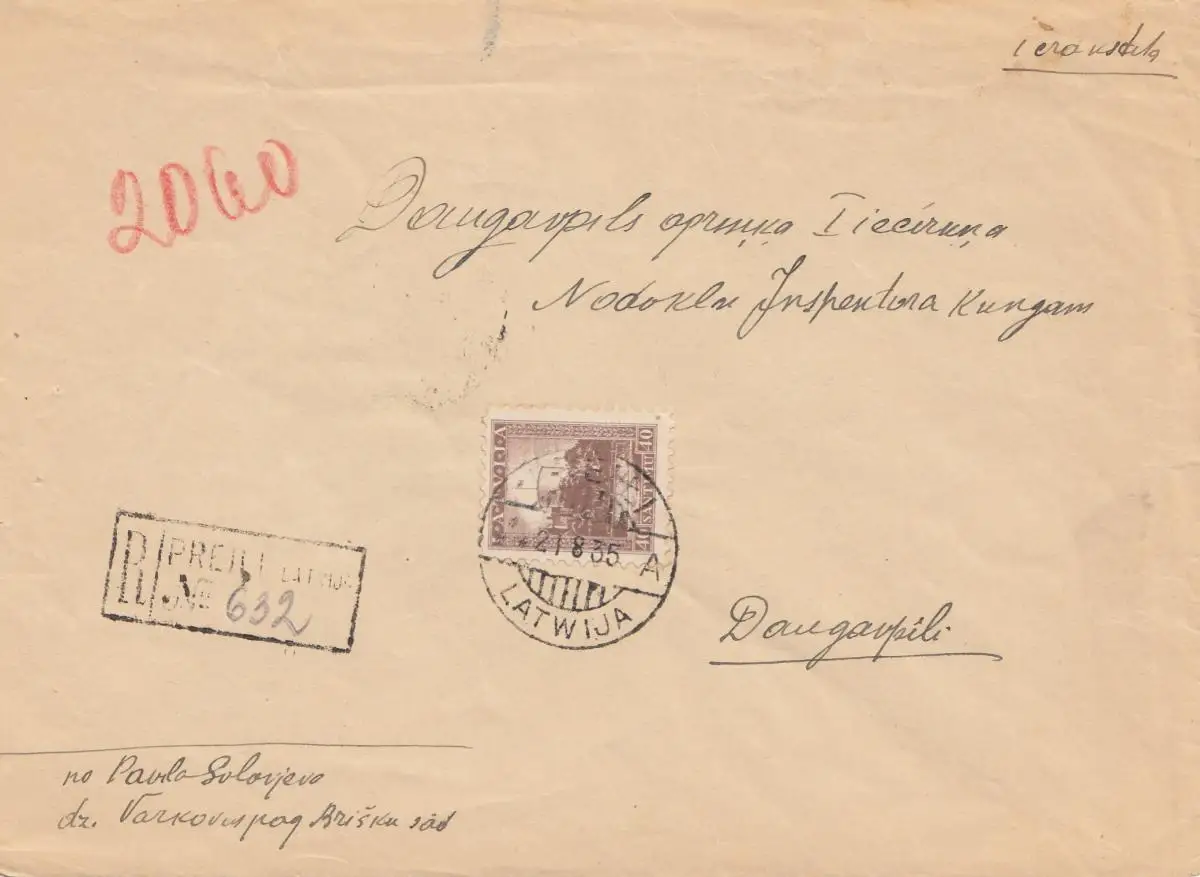 Lettonie: 1935: lettre recommandée pour Daugavpils