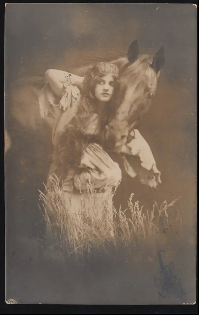 Lettonie Animaux AK femme à cheval, carte postale locale RIGA-RITUPE 10.6.1926