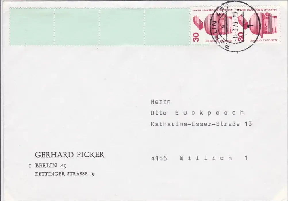 Lettre 1979 à Willich avec bande de fin de rouleau