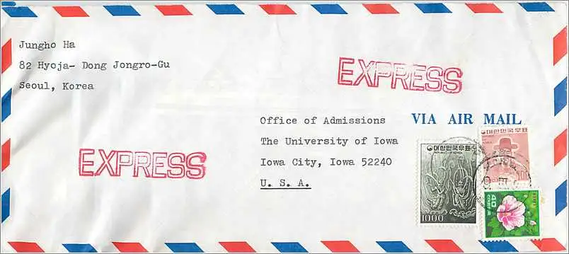 Lettre Cover Coree University Iowa City