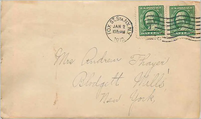 Lettre Cover Etats-Unis 1c * 2 Fox St NY 1912