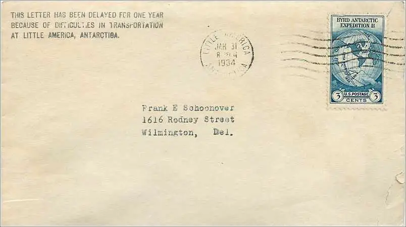 Lettre Cover Etats-Unis Little America Antartica Byrd Expedition 1934 Rare Polar Theme Polaire Delay