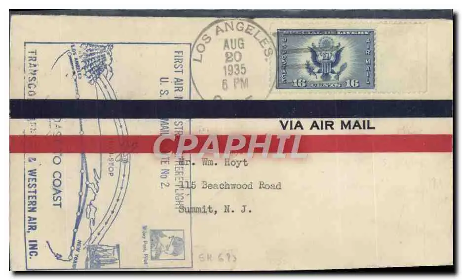 Lettre Etats Unis los Angeles 20 8 1935