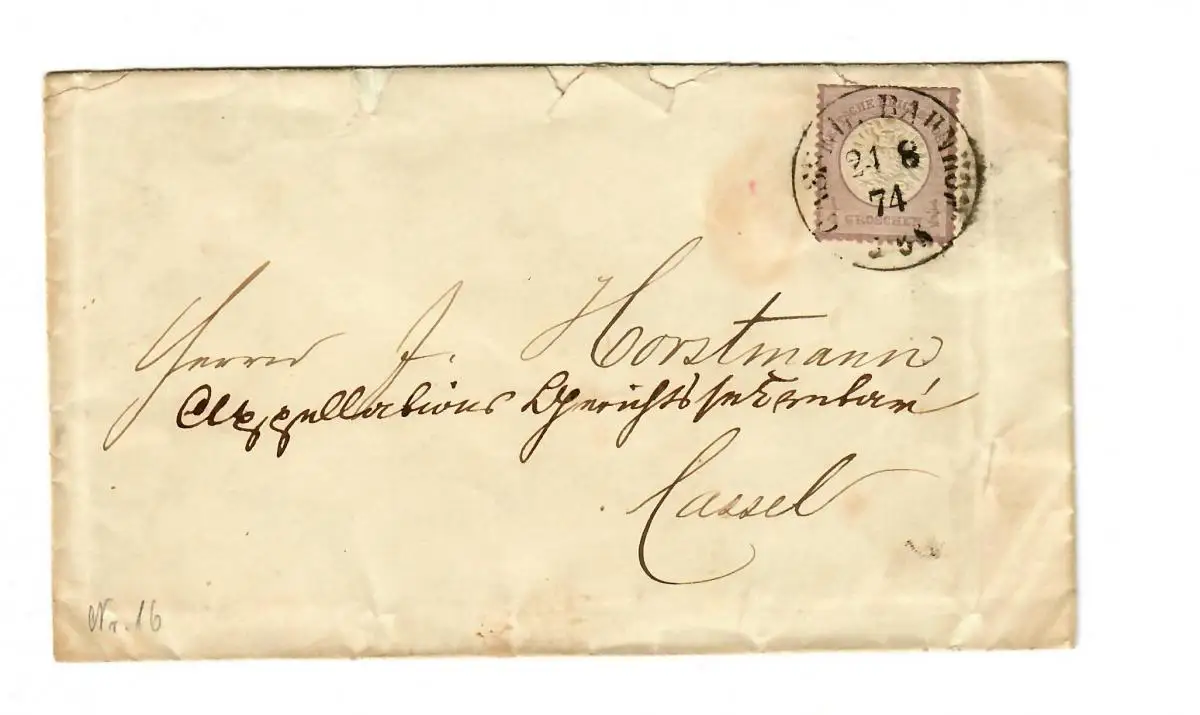 Lettre Kassel Gare 1874, Mi Nr. 16 EF, ciseaux ci-dessus