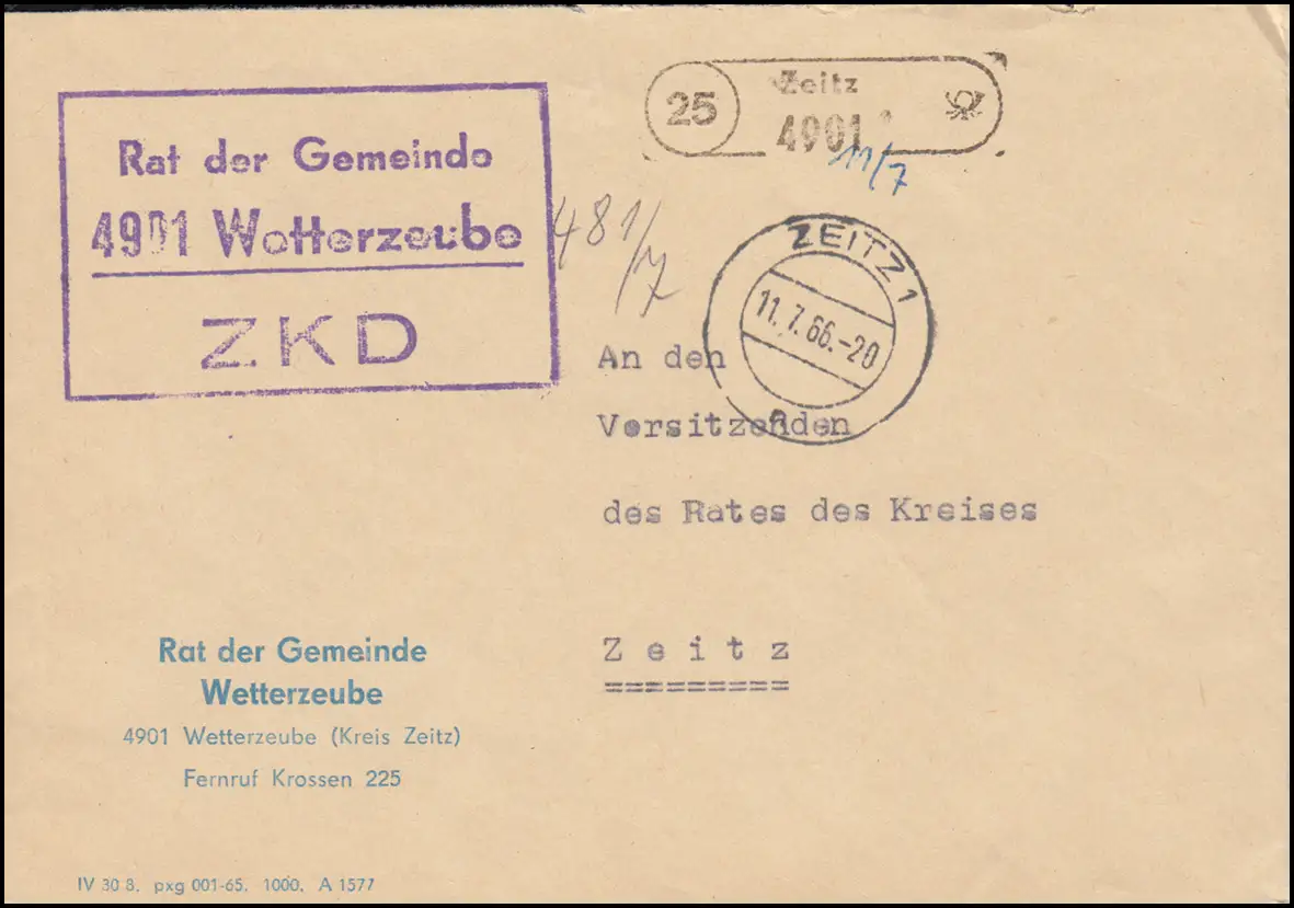 Lettre ZKD Conseil de la municipalité Météo Lettre locale ZEITZ 11.7.66 au conseil de district