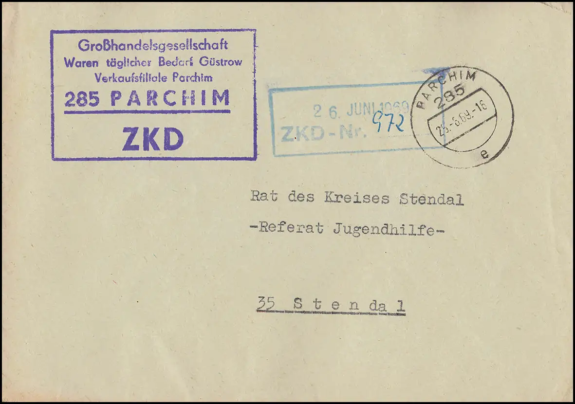 Lettre ZKD Société de gros Produits Demande quotidienne PARCHIM 25.6.69