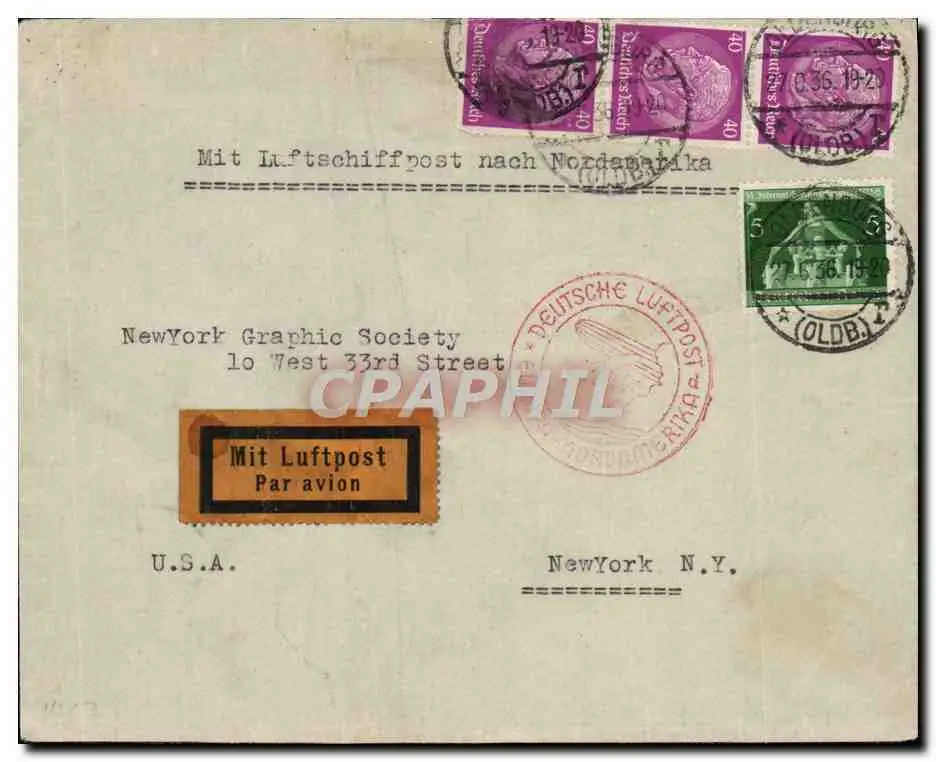 Lettre Zeppelin Europa Nordamerika 27 6 36