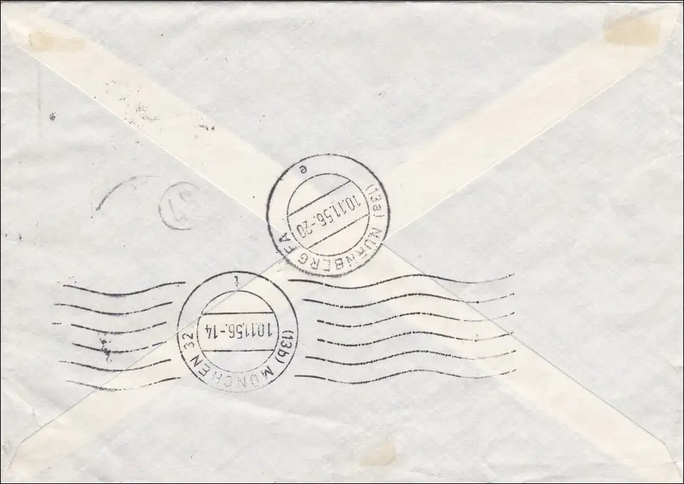 Lettre d'Eilbotenschrift de Munich à Nuremberg 1956