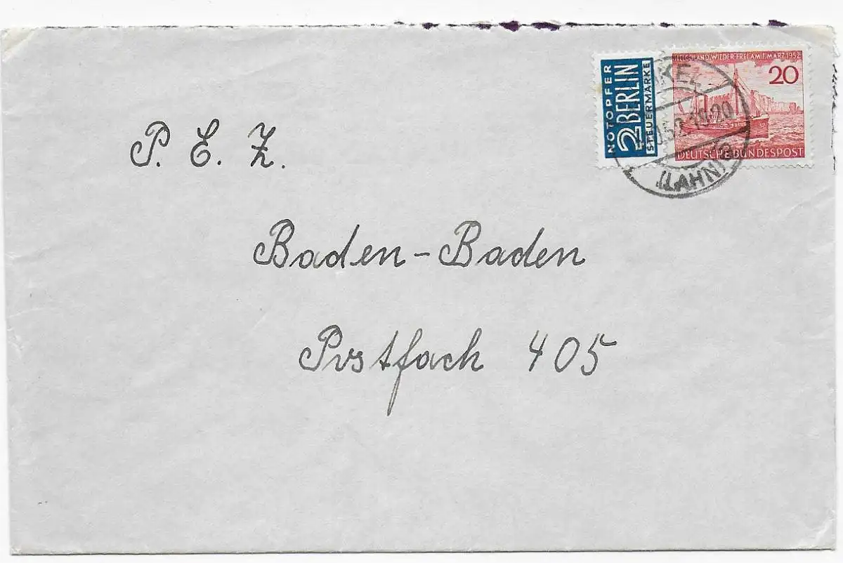 Lettre de 1952 à Baden-Baden