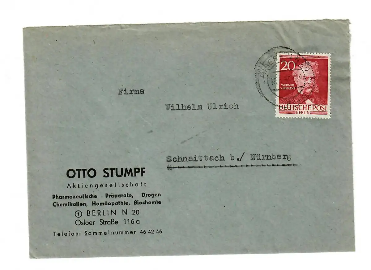 Lettre de Berlin 1953 à Schaittach/Nürnberg