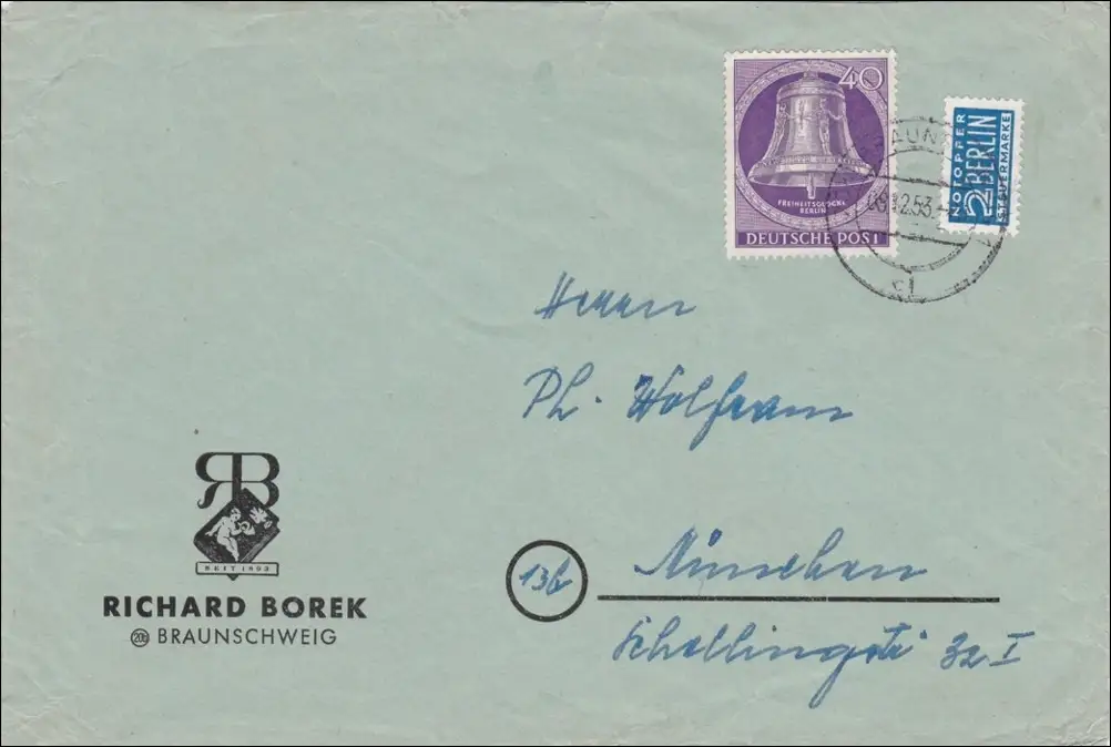 Lettre de Braunschweig à Munich 1953