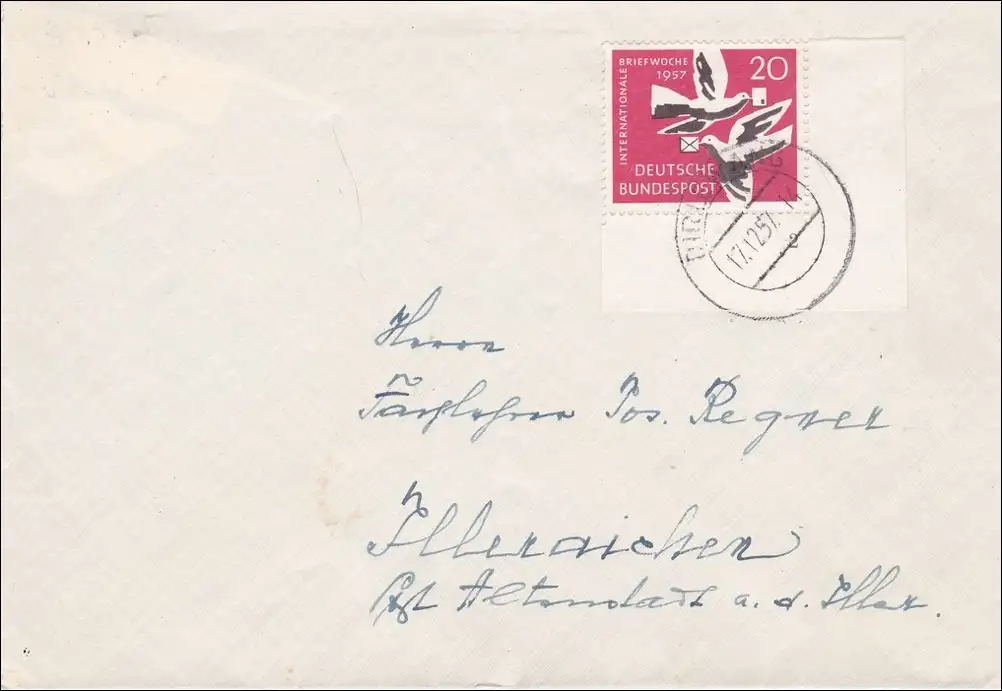 Lettre de Dirlewang à Illeraichen 1957 - Eckrand Marke