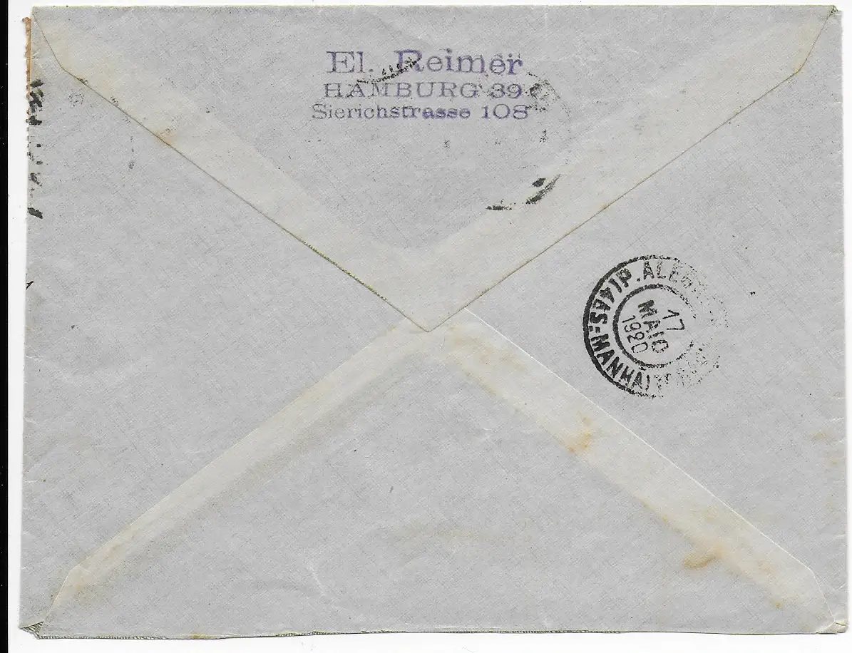 Lettre de Hambourg 1920 à Porto Alegre/Brésil