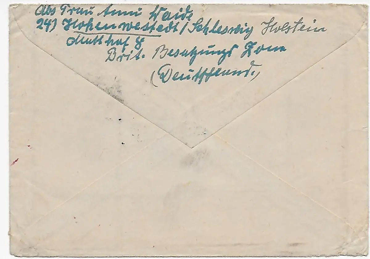Lettre de Hohenwestedt à Sao Paulo/Brésil, de retour 1947