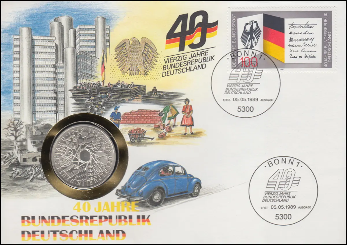 Lettre de Numis 40 ans en République fédérale d'Allemagne 10 FF / 100 Pf., ESTE Bonn 5.5.1989