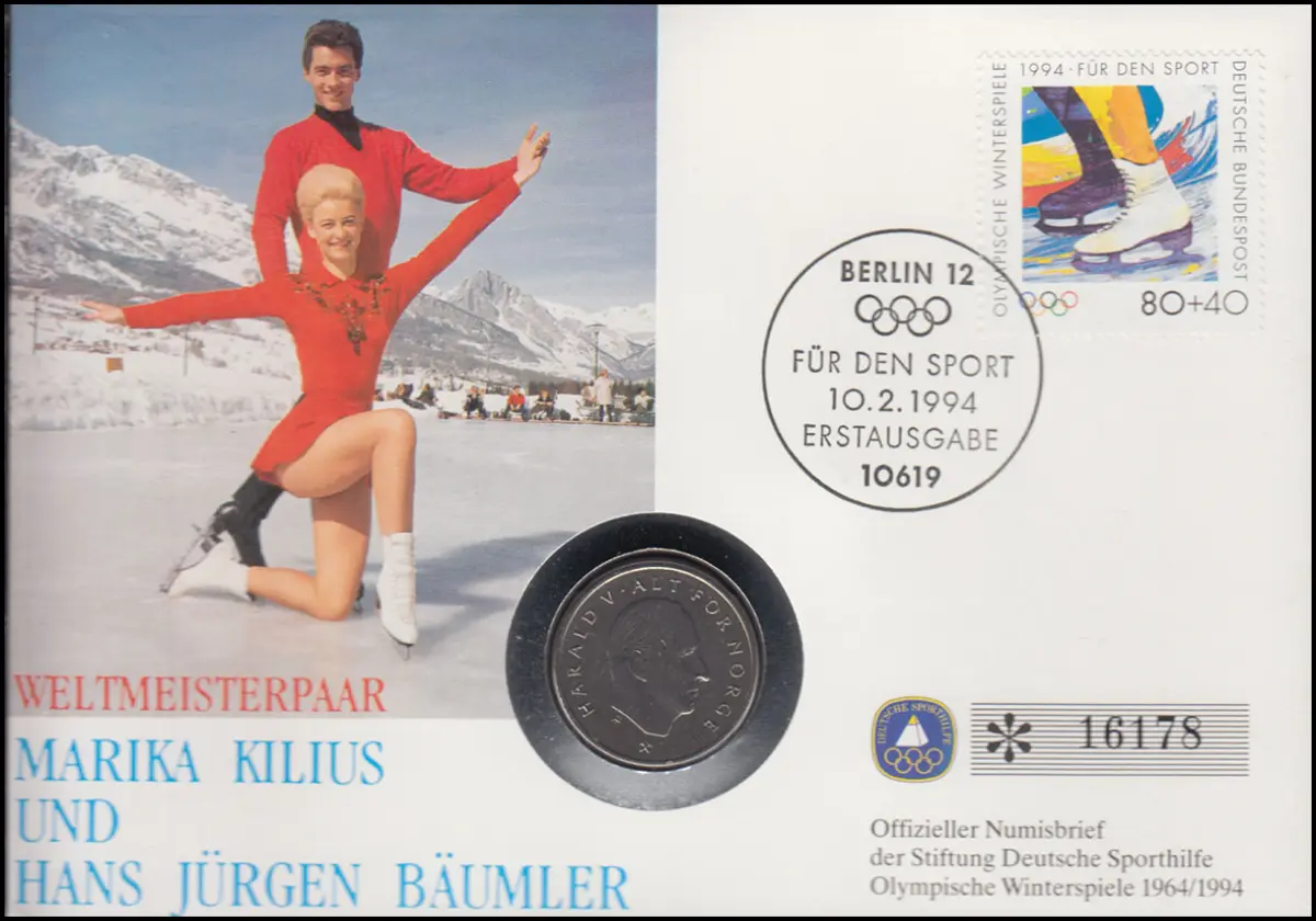 Lettre de Numis Allemagne Olympia Kilius Bäumler Münte 1 Couronne Harald ESSt 10.2.94
