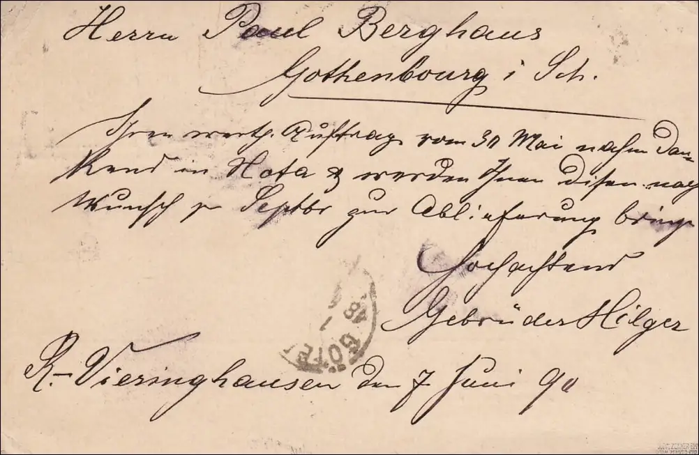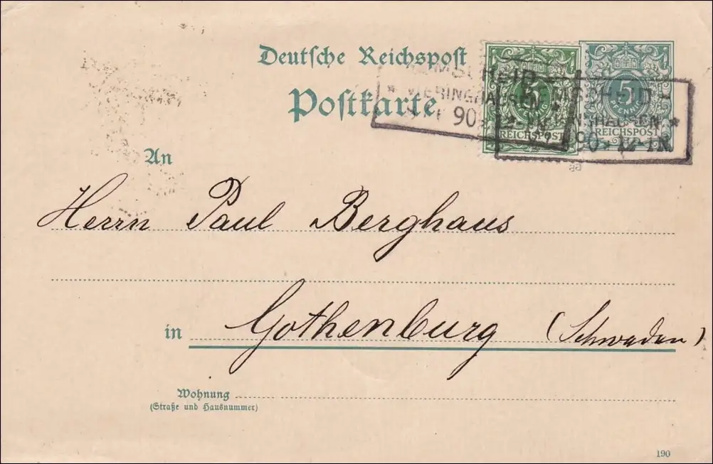 Lettre de Remscheid-Viesringhausen à Göteburg (Suède) en 1890, Sign. Zenker BPP