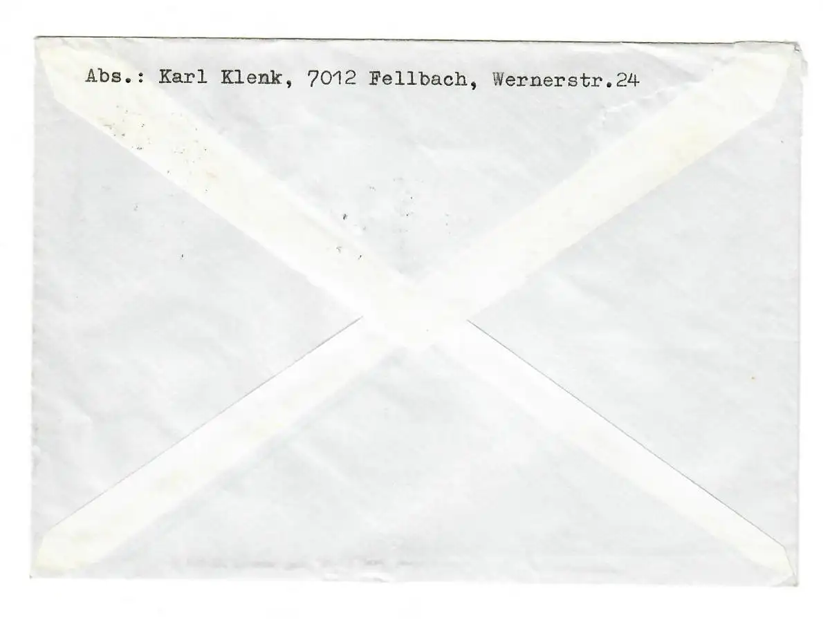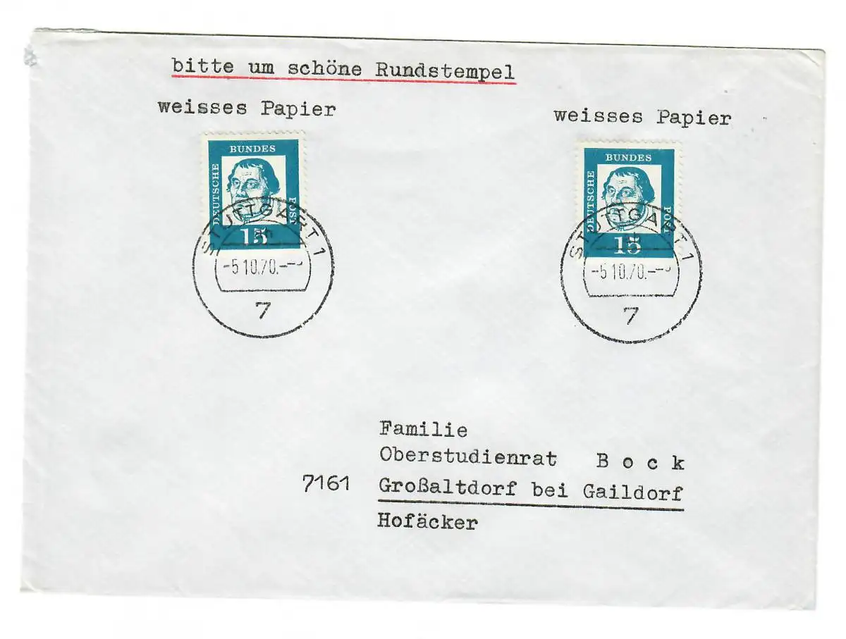 Lettre de Stuttgart 1970 à Grossaltdorf/Gaildorf, MeF