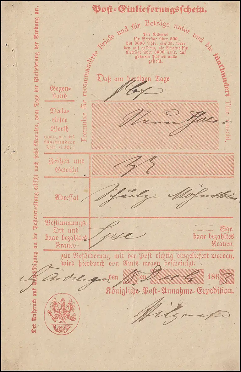 Lettre de crédit de la Prusse de Gardelegen 18.12.1863