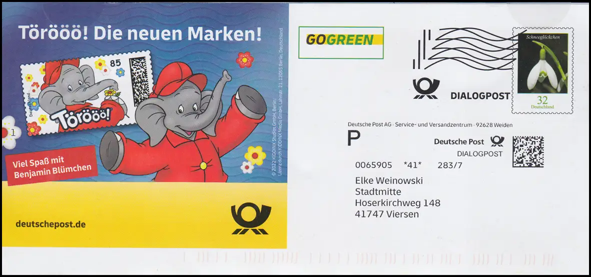Lettre de dialogue post Bouquet de neige Törööo! Benjamin Blümchen, Weiden 2022