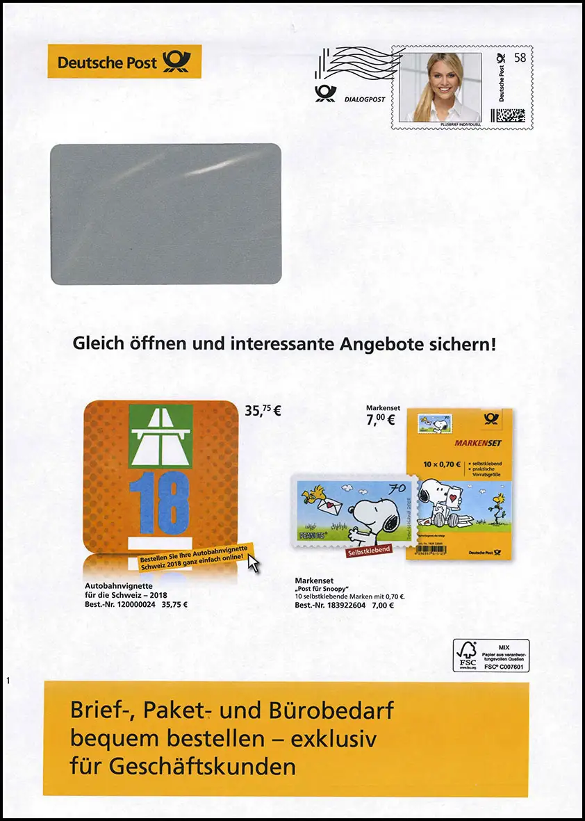 Lettre de plus EAI B Dialogue Post Adjoint 58 cent Snoopy / Autoroutevignette 2018
