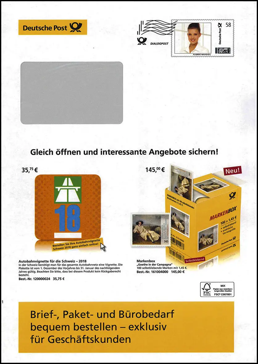 Plusbrief Auto-éditions de Deutsche Post avec Frankierwelle: Deutsche Poste / Posthorn-Logo Test: original Référence produit: 00000000015988>Remarque: Cet article n'est disponible qu'une seule fois. Vous recevrez exactement l'article représenté.