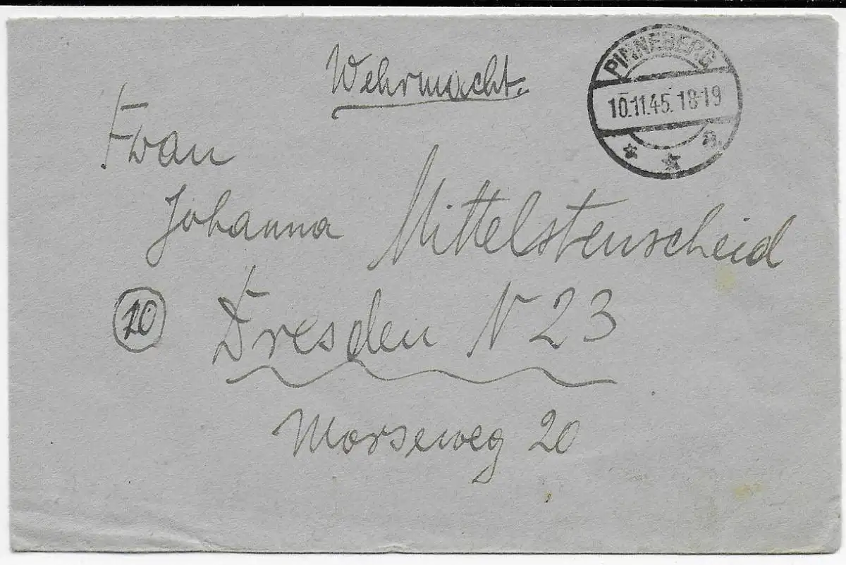 Lettre de prisonnier de guerre post-post: Hors-Pinneberg à Dresde en 1945