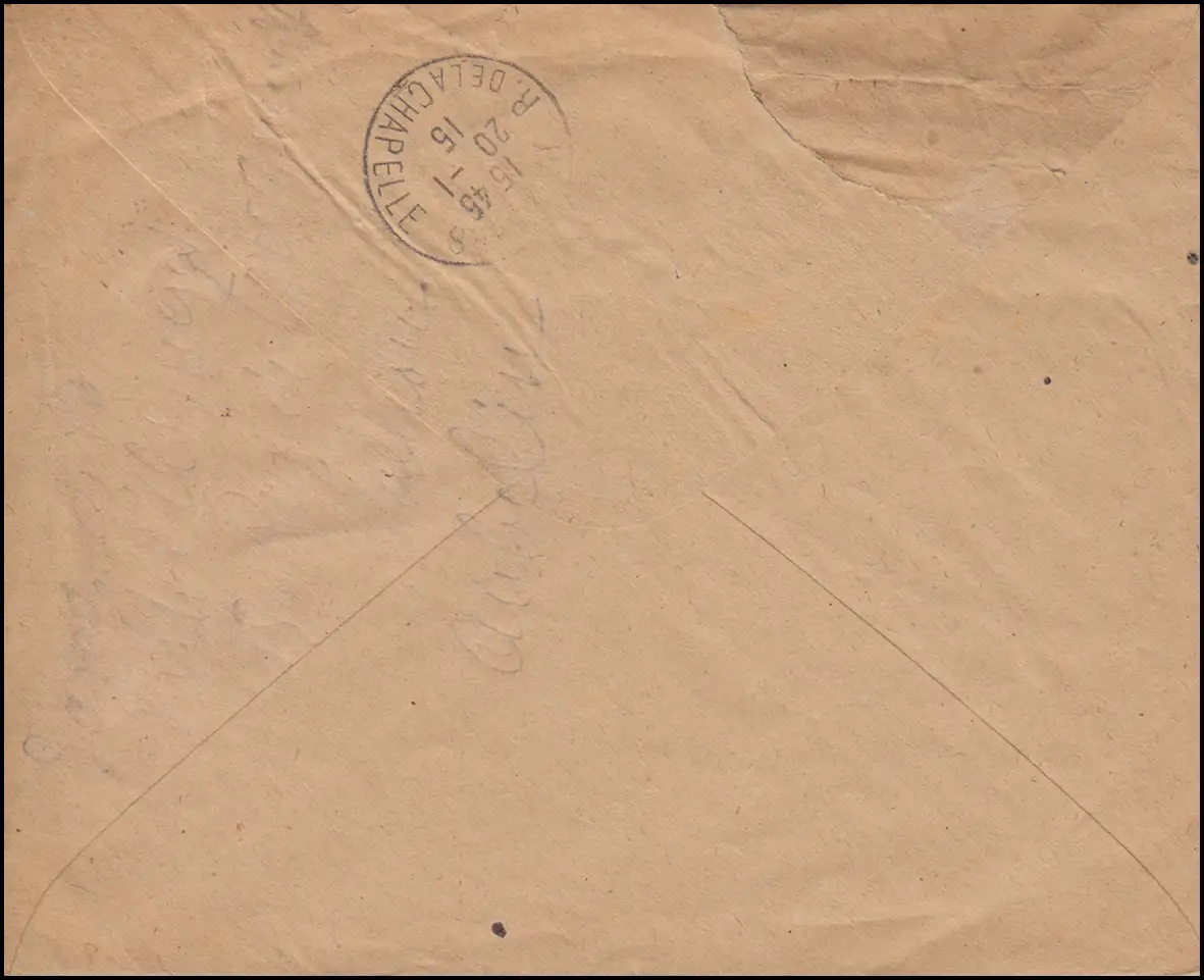 Lettre recommandée avec le cachet d'arrivée PARIS 20.1.15. - Enveloppe ouverte au-dessus de la figure. Vérification: original Référence produit: 00000000016732