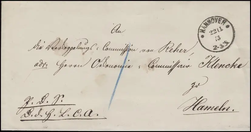 Lettre de service de Hanovre cachet en cercle HANNOVER 22.11.73 selon HAMELN