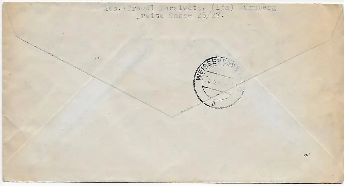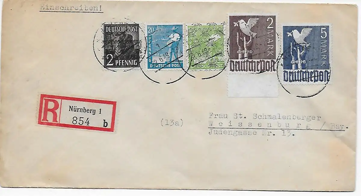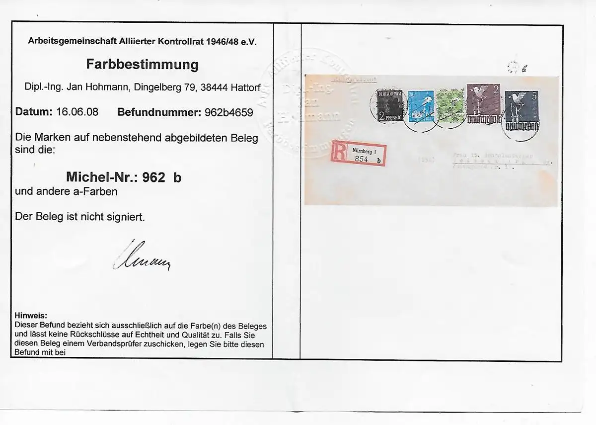 Lettre d'inscription de Nuremberg 1948 à Weissenburg, Min. 962b, examiné