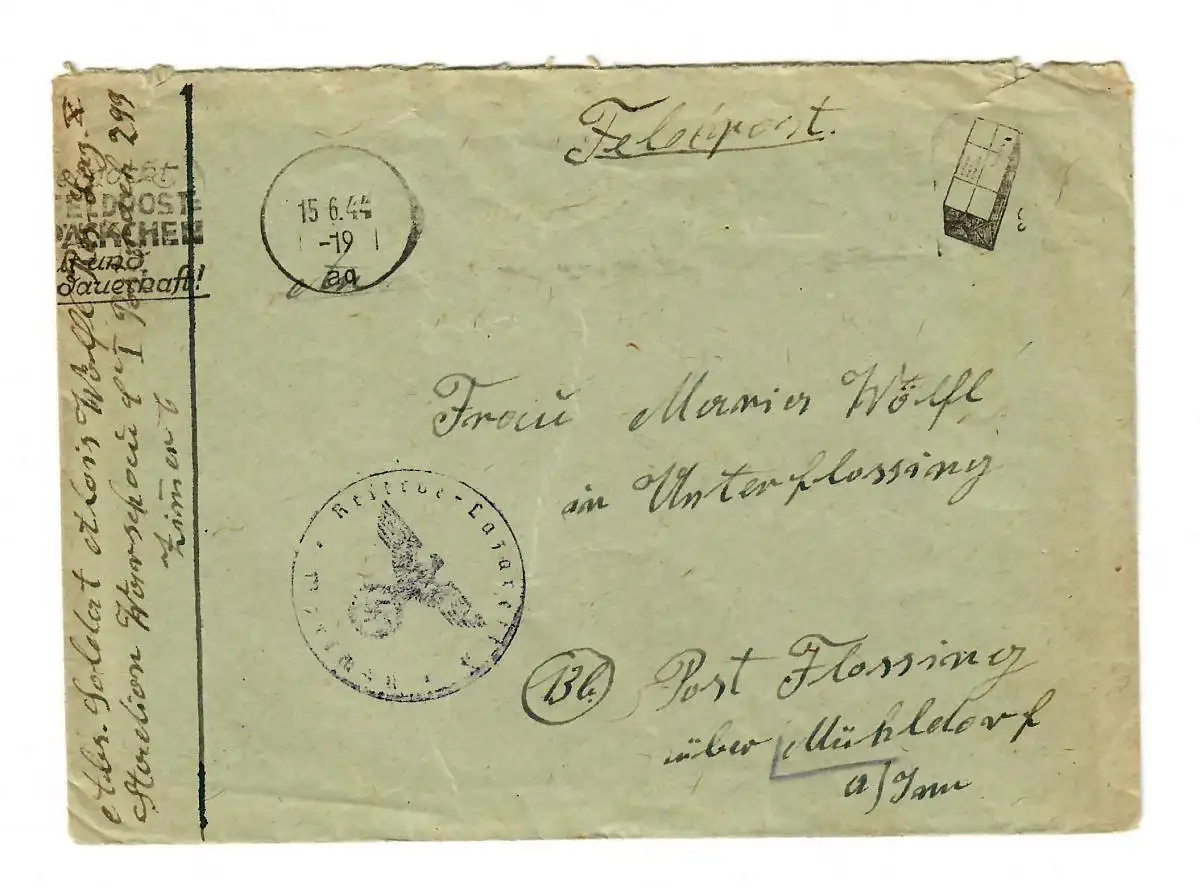 Lettre postale de Varsovie en 1944, à Post Flossing/Mühldorf/Inn avec cachet publicitaire