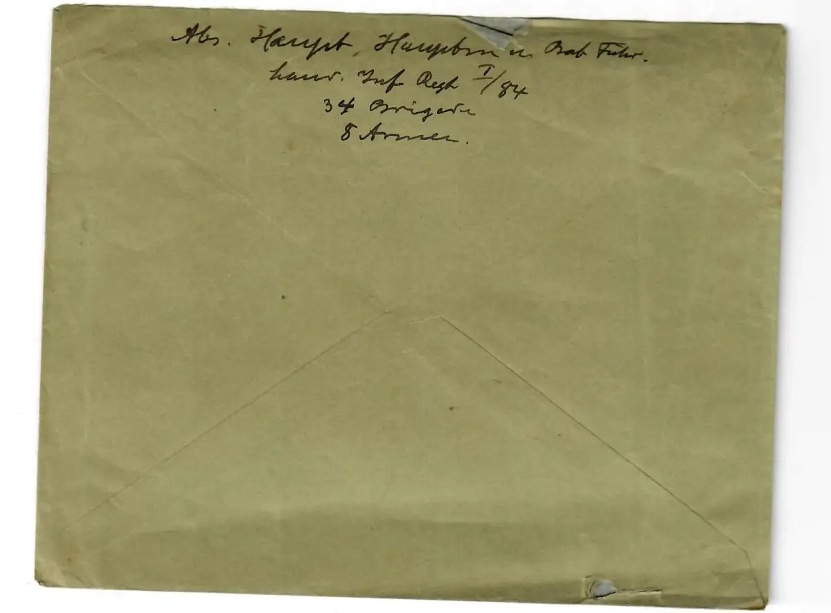 Lettre postale de campagne avec cachet de la poste d'Angerburg-Darkfelder 1915 à Hambourg