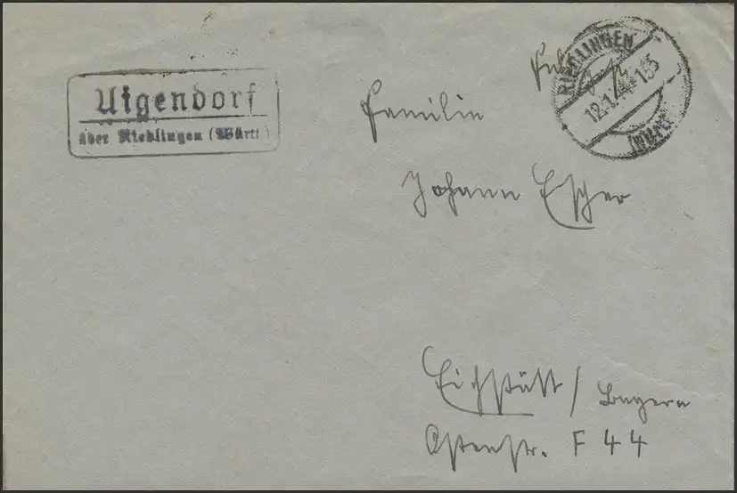 Lettre postale de campagne avec le temple de Landpost Uigendorf sur Riedlingen/Württem
