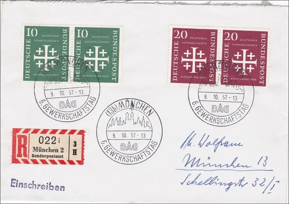 Lettre recommandé par Munich - 6ème jour du syndicat - cachet spécial 1957