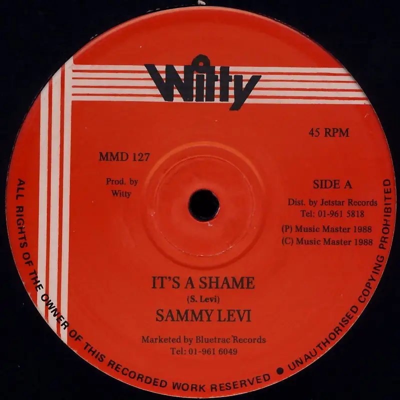 12" Maxi Sammy Levi - It's A Shame, couverture neutre, état disque M-; Fabriqué en United Kingdom 1988 Witty MMD127, Tracks Id& #039,s Shame, [Dub Vers]