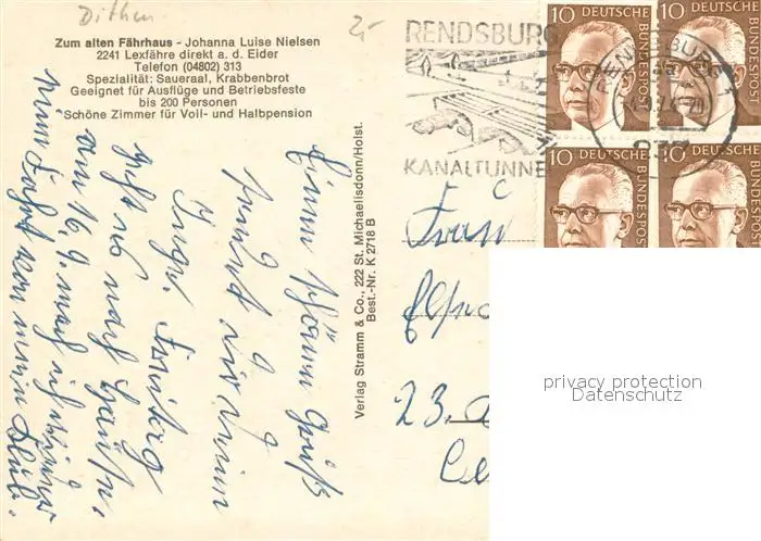 Lexfaehre_Dithmarschen Gaststaette Zum alten Faehrhaus Panorama Schleuse postalisch gelaufen 1974 Erhaltung siehe scans [WerneD78] WernPID7