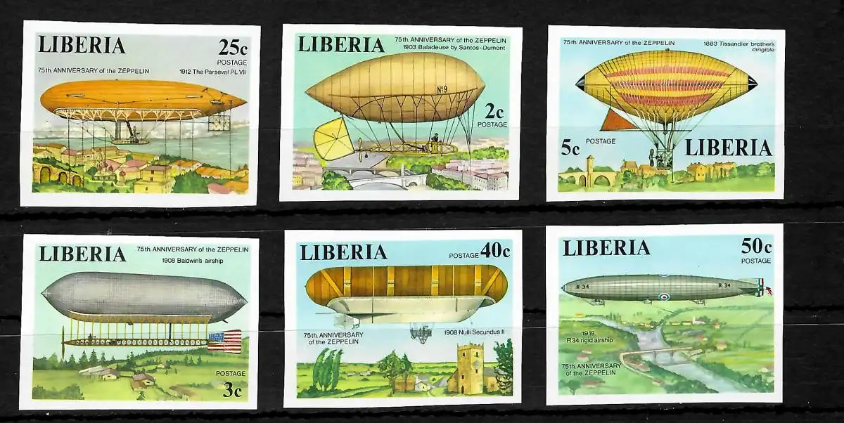 Liberia: 75 ans de navires zippin, 6 marques, #1054-1059B, **