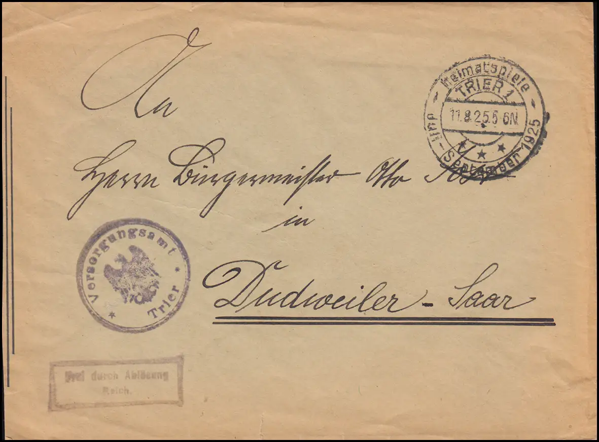Libre par remplacement Service de secours Trèves Lettre SSt TRIER Jeux d'origine 11.8.1925