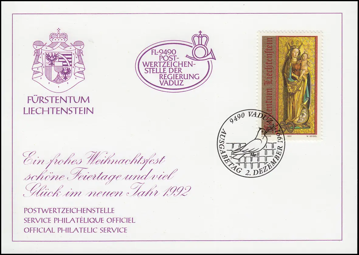 Liechtenstein 1028 Noël - Carte de vœux pour la fin de l'année 1992