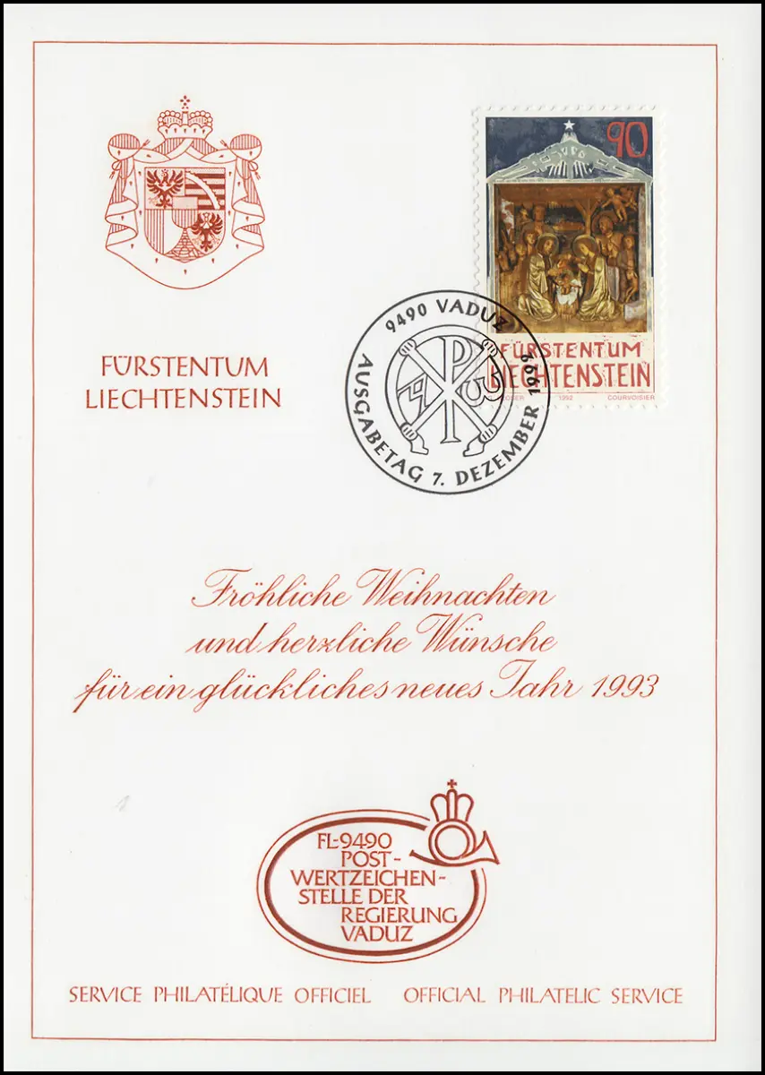 Liechtenstein 1051 Noël - Carte de vœux pour la fin de l'année 1993