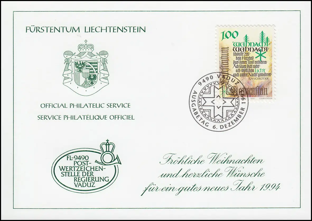 Liechtenstein 1075 Noël - Carte de vœux pour la fin de l'année 1994