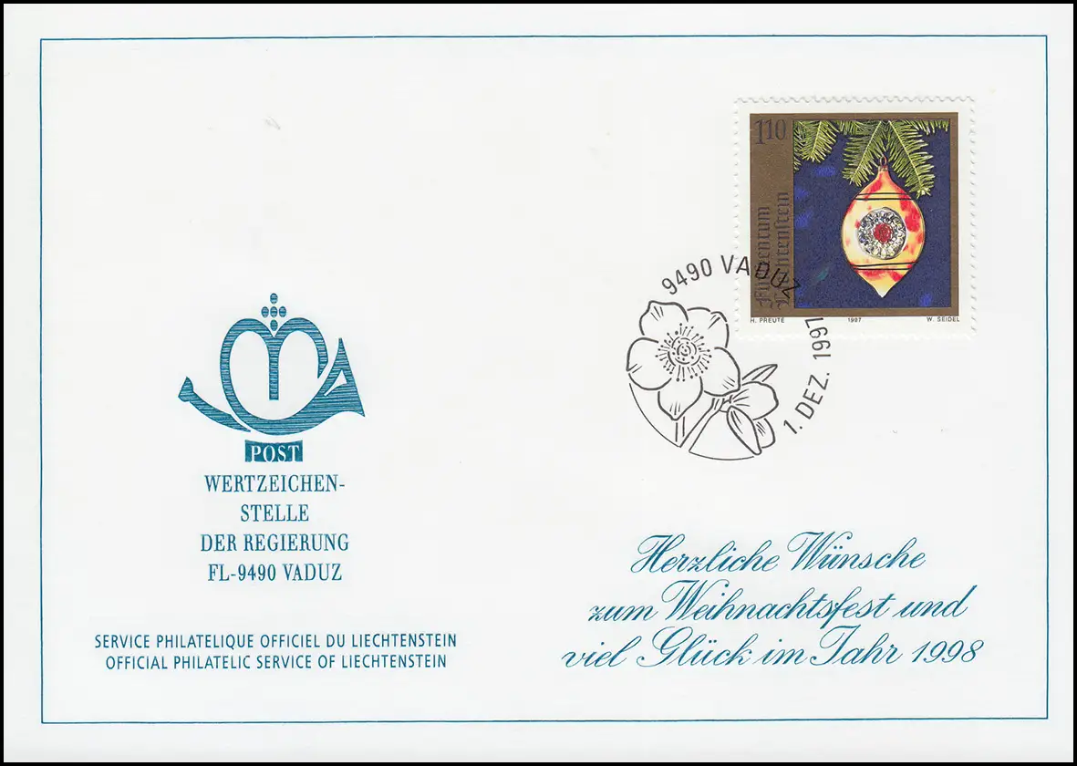 Liechtenstein 1161 Noël - Carte de vœux pour la fin de l'année 1998