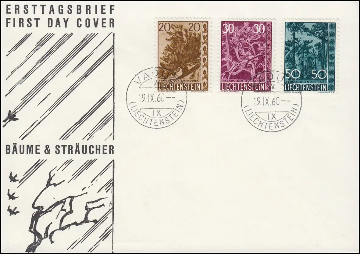Liechtenstein 399-401 arbres et arbustes - ensemble sur les bijoux-FDC VADUZ 16.9.60